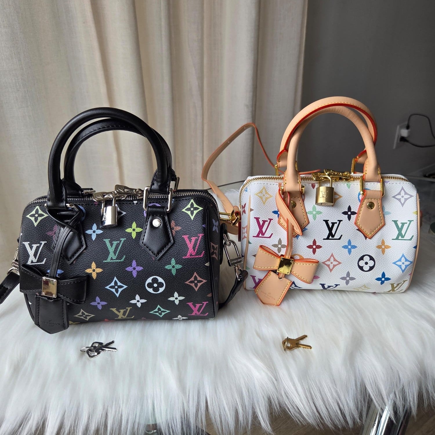 • Includes bag, detachable long strap, detachable bow, lock & key.